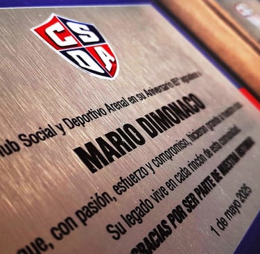 Reconocimientos que combinan elegancia y emoción. Placas grabadas a láser sobre madera, acrílico, cristal o acero inoxidable. Ideales para homenajes, aniversarios, retiros o distinciones institucionales.